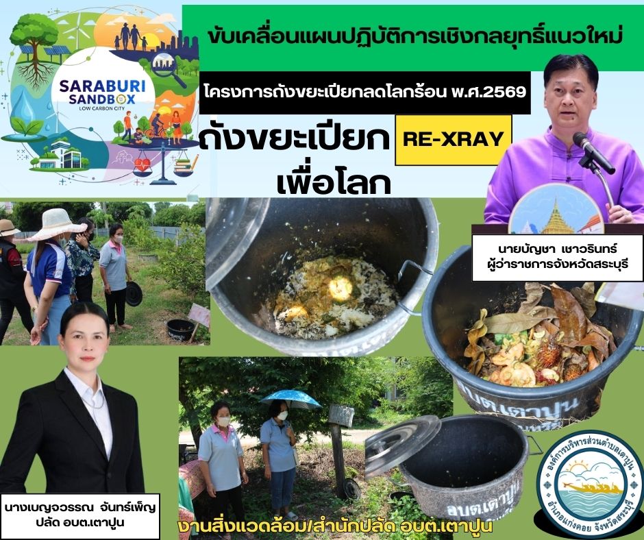ในการนี้ ส่วนงานสิ่งแวดล้อม องค์การบริหารส่วนตำบลเตาปูน ได้ดำเนินการ โครงการถังขยะเปียกลดโลกร้อน ภายในพื้นที่ตำบลเตาปูน เพื่อส่งเสริมการคัดแยกขยะอินทรีย์ ลดปริมาณขยะ ลดการปล่อยก๊าซเรือนกระจก และสร้างจิตสำนึกด้านการอนุรักษ์สิ่งแวดล้อมให้แก่ประชาชนในพื้นที่